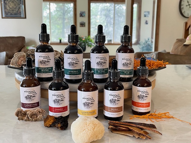 “Through Mountain Grown Goods, I bring together years of scientific knowledge, hands-on cultivation, and reverence for the natural world to offer people trusted, high-quality mushroom extracts that support health and balance in everyday life.”